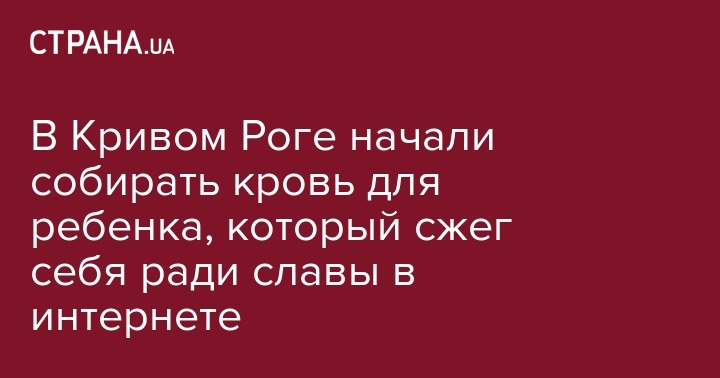 В Кривом Роге начали собирать кровь для ребенка, который сжег себя ради славы в интернете