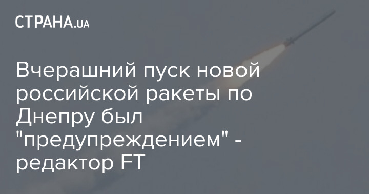 Вчерашний пуск новой российской ракеты по Днепру был "прежде всего предупреждением". Так считает редактор Financial Times по Европе Бен Холл.