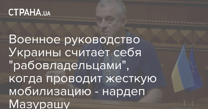 Военное руководство Украины считает себя "рабовладельцами", когда проводит жесткую мобилизацию. Об этом заявил народный депутат от "Слуги народа" Георгий Мазурашу в интервью Лане Шевчук.