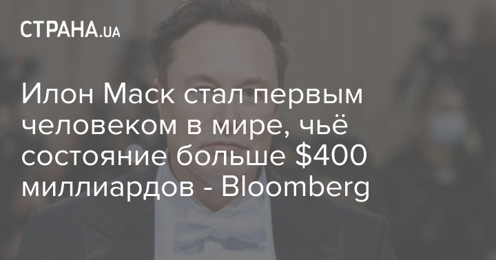 Илон Маск стал первым человеком в мире, чьё состояние больше $400 миллиардов - Bloomberg