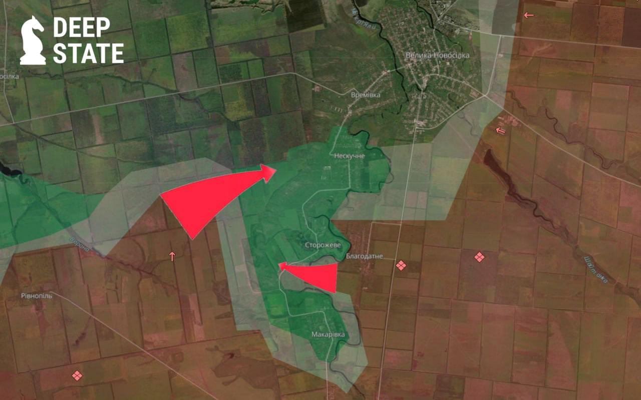17:08 ВСУ в селе Макаровка под Великой Новоселкой рискуют попасть в окружение, пишет украинский военный паблик Deep State.