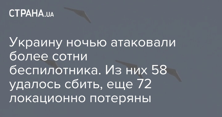 Украину ночью атаковали более сотни беспилотника. Из них 58 удалось сбить, еще 72 локационно потеряны