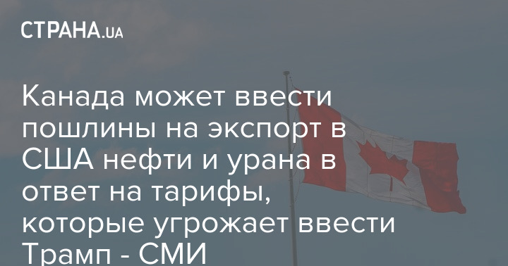 Канада может ввести пошлины на экспорт в США нефти и урана в ответ на тарифы, которые угрожает ввести Трамп - СМИ