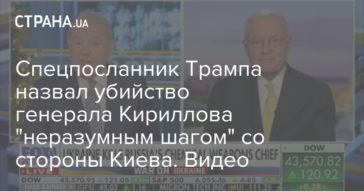Специальный посланник Дональда Трампа по Украине и России заявил, что убийство российского генерала Кириллова "не было разумным шагом" со стороны украинской власти.