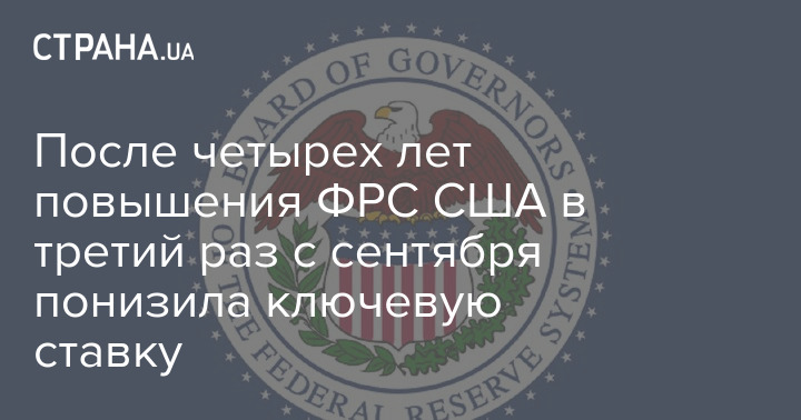 После четырех лет повышения ФРС США в третий раз с сентября понизила ключевую ставку
