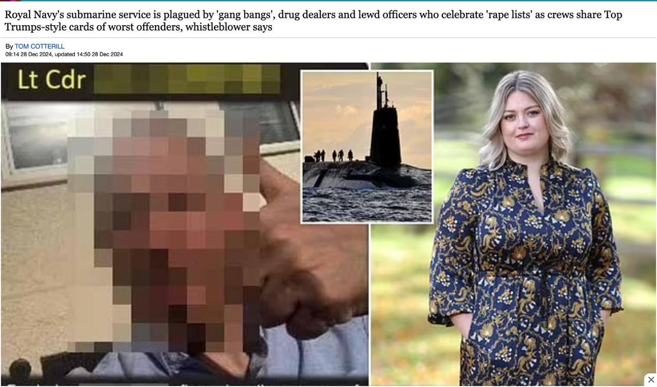 "Британская общественность будет справедливо потрясена уровнем разврата. Элитные силы атомных подводных лодок продолжают демонстрировать отвратительное поведение, несмотря на обещания высшего военного командования навести порядок в подводном подразделении ВМС", — добавило издание со ссылкой на информированные источники.