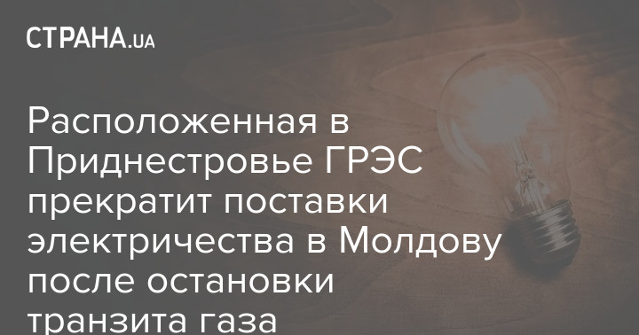 Расположенная в Приднестровье ГРЭС прекратит поставки электричества в Молдову после остановки транзита газа