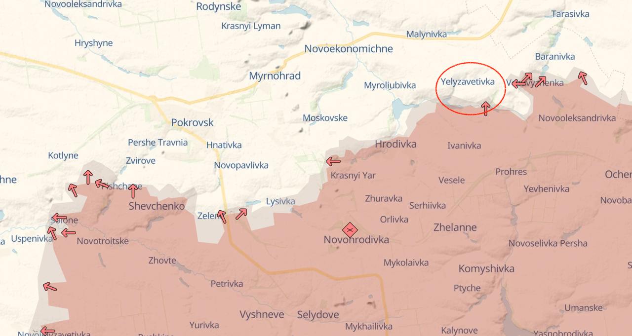 Отмечается, что россияне наступают также и на Барановку (это подтверждают и украинские источники). Боевые действия проходят в непосредственной близости от трассы Покровск - Константиновка, до которой осталось чуть более трех километров.