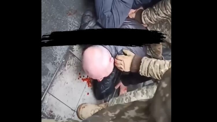 Не кадрах видно, что у мужчины разбито лицо. По итогу потасовки он поднимается и идёт к автомобилю военкомов, показывая, что на полу пассажирского отделения лежит его нательная сумка.