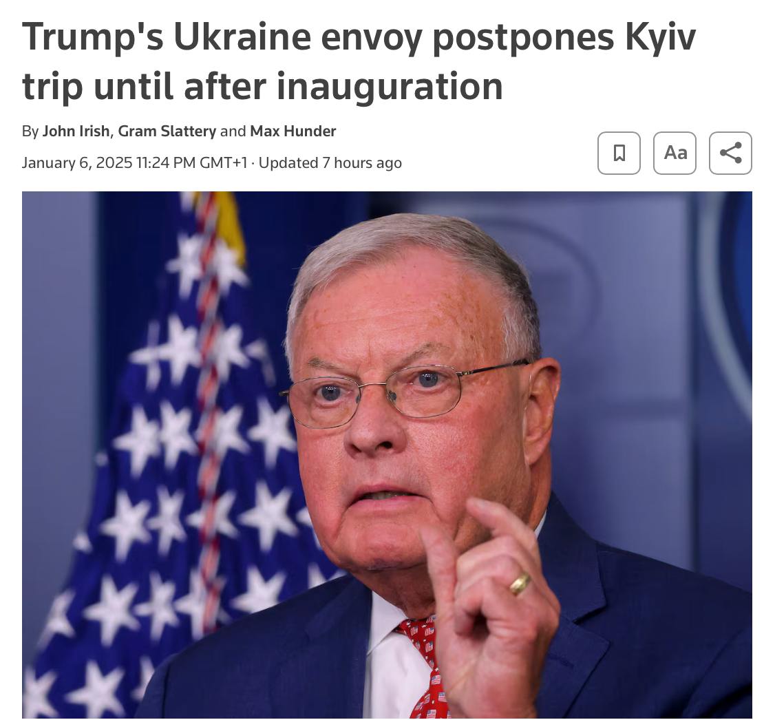 7.50 Представитель Трампа по Украине Кит Келлог отложил поездку в Киев, которая должна была состояться в начале января.