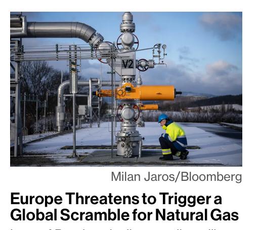 По версии агентства, теряя поставки по российским трубопроводам, Европа грозит спровоцировать "глобальную схватку за природный газ".