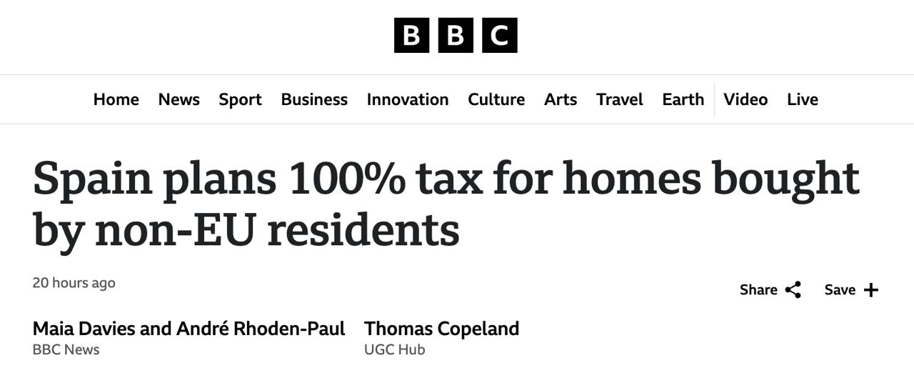 Испания планирует ввести 100%-й налог на жилье, купленное нерезидентами ЕС