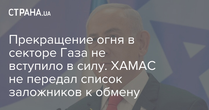 Прекращение огня в секторе Газа не вступило в силу в 8:30, как планировалось ранее. Премьер-министр Израиля Биньямин Нетаньяху заявил, что ХАМАС не передал согласованный ранее список заложников к обмену.