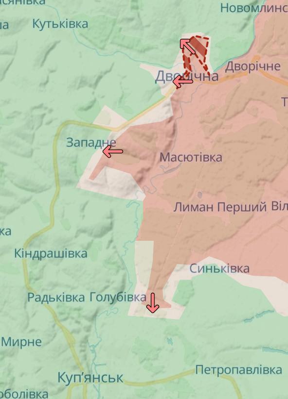 9.42 Армия РФ расширяет свои плацдармы на правом берегу реки Жеребец в Ивановке Донецкой области и на правом берегу реки Оскол в Двуречной Харьковской области.