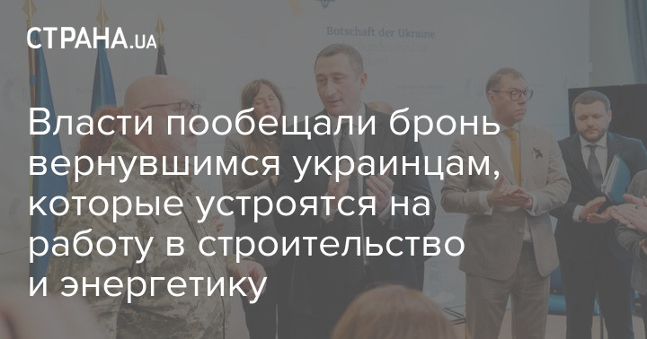 Вернувшимся из-за границы украинским мужчинам обещают отсрочку от армии при работе не только на оборонных предприятиях, но также в сфере строительства и энергетики.