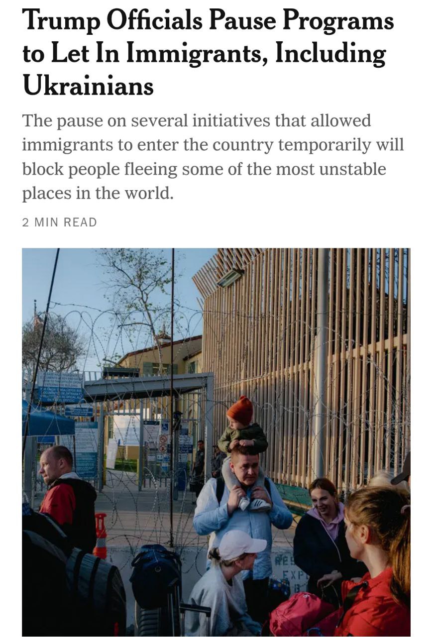 Также выяснилось, что новая директива требует немедленного прекращения принятия "окончательных решений" по заявлениям, которые поданы мигрантами. Уточняется, что помимо Украины, прием беженцев приостановлен из Кубы, Гаити и Венесуэлы.