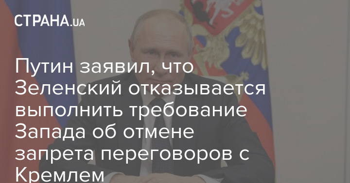 Российский лидер Владимир Путин заявляет, что Запад требует от президента Украины Владимира Зеленского отменить указ о запрете проведения переговоров с президентом РФ, но он это делать отказывается.