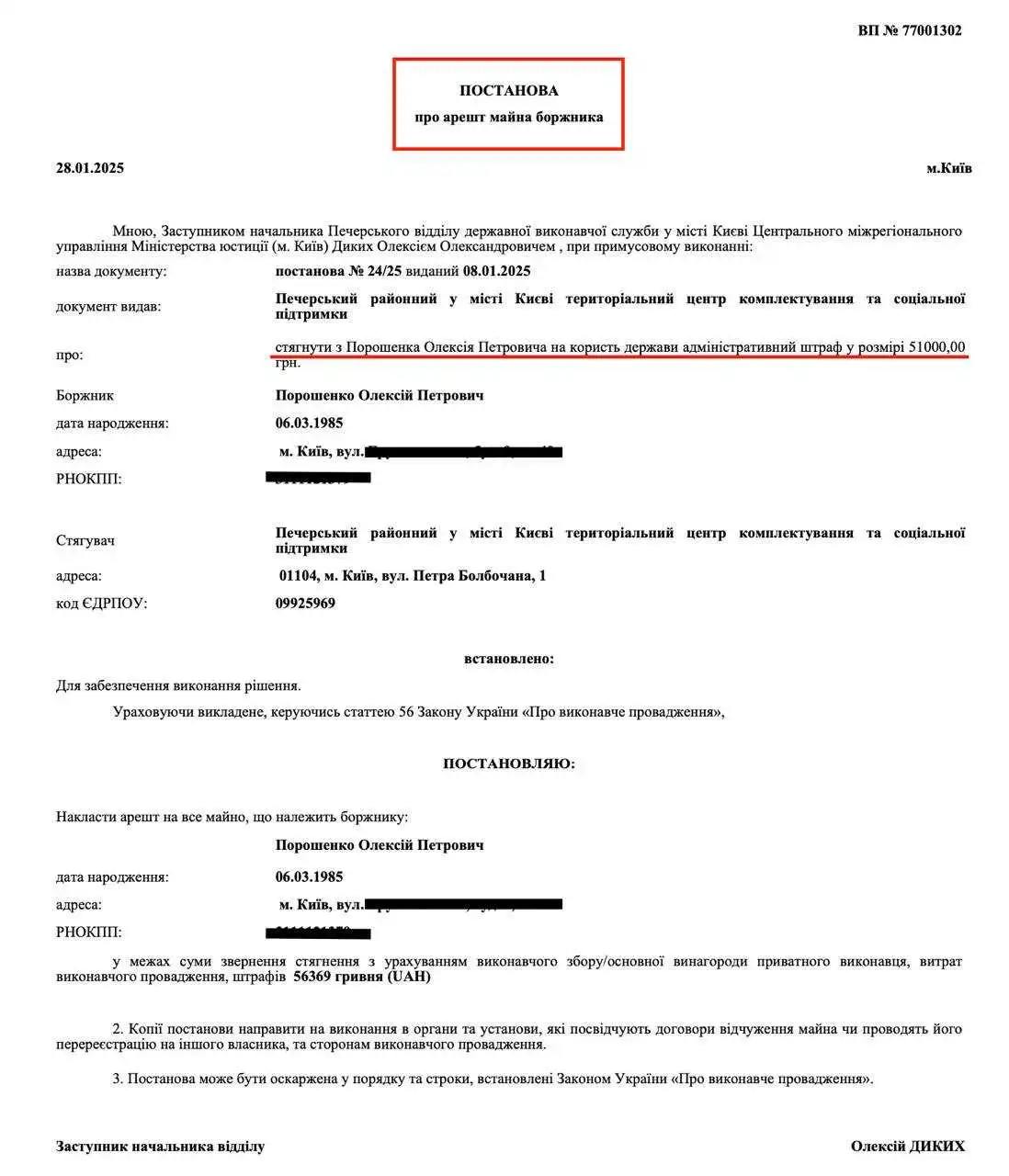 "Страна" сообщала о том, что он должен был заплатить штраф за неявку по военной повестке в ТЦК.