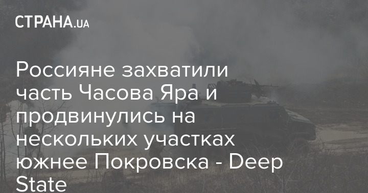 У российских войск крупное продвижение в южной части Часова Яра. Об этом свидетельствует карта украинского военного паблика Deep State.