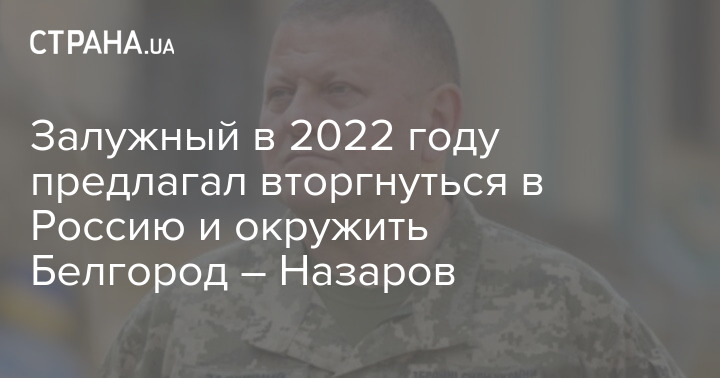 Экс-главком Вооружённых сил Украины Валерий Залужный ещё в 2022 году предлагал вторгнуться в РФ и окружить Белгород.