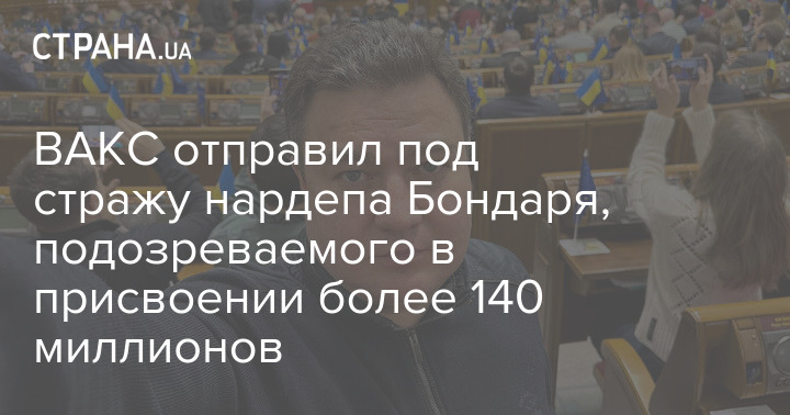 ВАКС отправил под стражу нардепа Бондаря, подозреваемого в присвоении более 140 миллионов