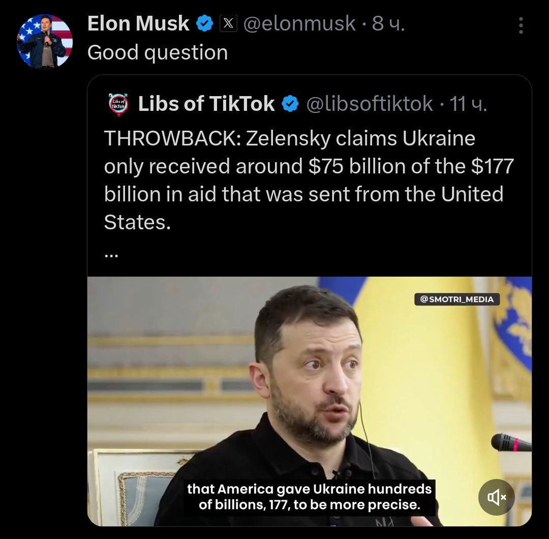 Кроме того Маск призвал разобраться, куда делась часть американской помощи Украине.