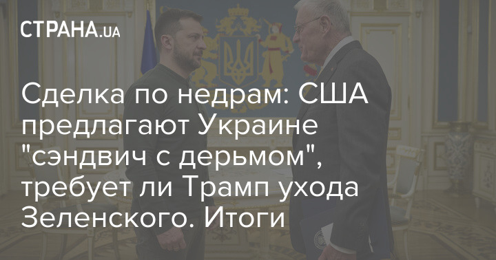 Предлагаемое американцами соглашение по украинским месторождениям - "это сэндвич с дерьмом, но Украине придется его проглотить, потому что Трамп ясно дал понять, что это (поддержка Украины - Ред.) больше не наша проблема", анонимно заявил представитель администрации Трампа изданию Аxios.