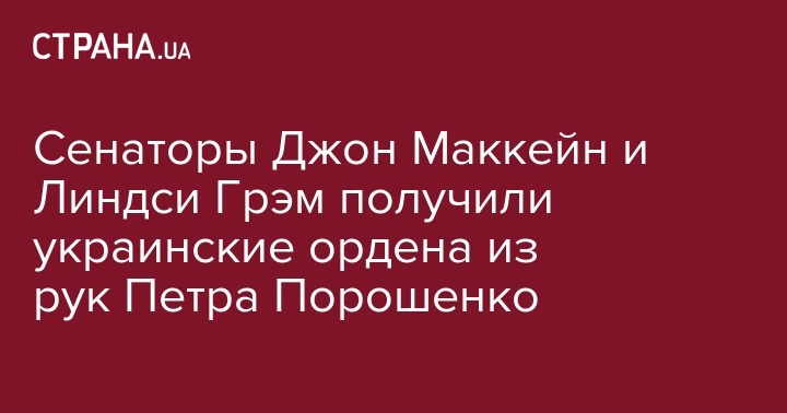 Президент наградил сенатора Джона Маккейна орденом Свобода, а сенатора Линдси Грэма - орденом Ярослава Мудрого за весомый персональный вклад в укрепление отношений между Украиной и Соединенными Штатами Америки.