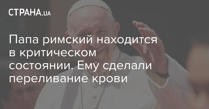 Глава католической церкви папа римский Франциск, который лежит в больнице с острой пневмонией, прошёл процедуру переливания крови.