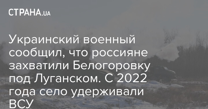 Украинский военный сообщил, что россияне захватили Белогоровку под Луганском. С 2022 года село удерживали ВСУ