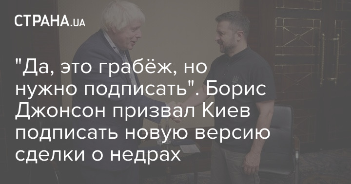 "Да, это грабёж, но нужно подписать". Борис Джонсон призвал Киев подписать новую версию сделки о недрах