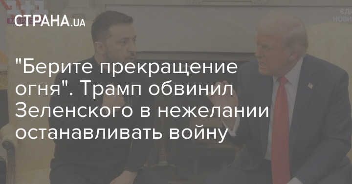 Трамп: Но, видите ли, я думаю, что для американского народа важно видеть, что происходит. Я считаю это очень важным. Именно поэтому я продолжал это так долго. Вы должны быть благодарны. У вас нет карт. Вы загнаны туда. Ваши люди умирают. У вас заканчиваются солдаты. А потом вы говорите нам: "Я не хочу прекращения огня. Я не хочу прекращения огня. Я хочу идти дальше, и я хочу этого". Смотрите, если бы вы могли сейчас добиться прекращения огня, я вам говорю: берите его, чтобы пули перестали летать, и ваши люди перестали гибнуть. Вы говорите, что не хотите прекращения огня? Я хочу прекращения огня.
