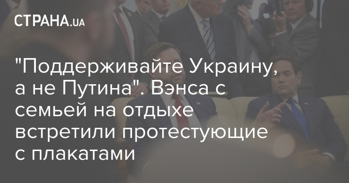 "Поддерживайте Украину, а не Путина". Вэнса с семьей на отдыхе встретили протестующие с плакатами