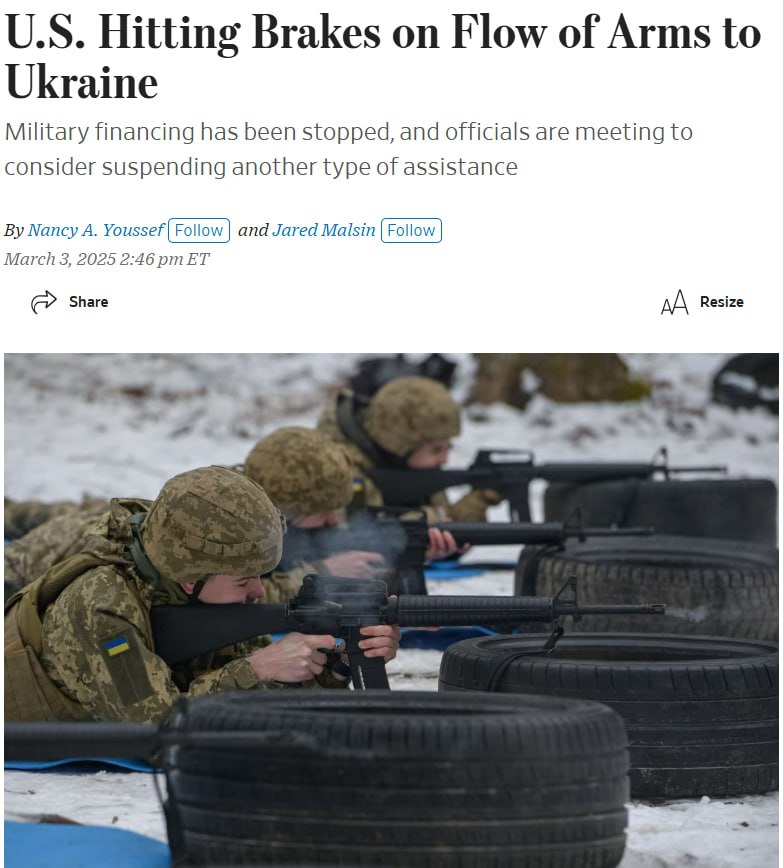 18.55 Трамп может полностью приостановить военную помощь Киеву на сегодняшнем совещании по урегулированию конфликта в Украине, сообщает Axios со ссылкой на источники.