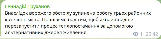 22.45 После атаки "Шахедов" в Одессе остановили три котельные, сообщает мэр Труханов.