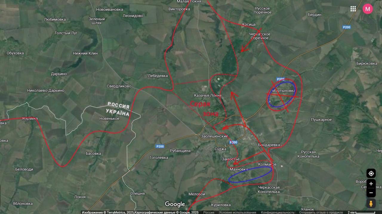Российские паблики показывают кадры сдачи солдат ВСУ в плен в Черкасском Поречном. Также часть пабликов утверждают, что взяли Мартыновку к северо-востоку от Суджи, чему пока никаких подтверждений нет. Ряд российских пабликов взятие этого села опровергают (заявляя, что говорить об этом преждевременно), другие пишут, что в Мартыновке силы ВСУ блокированы. Но точной информации о происходящем там, повторимся, пока нет.