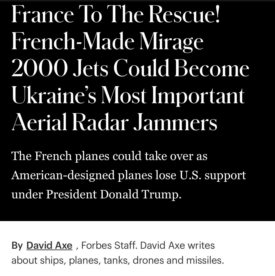 При этом аналитик Дэвид Акс отметил, что у украинских военных большая надежда на французские истребители Mirage-2000, которые поставляет Франция.