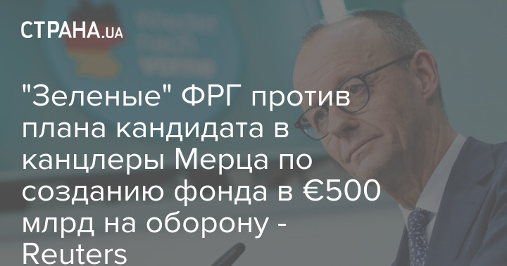 Немецкая партия "Зеленых" выступает против плана кандидата в канцлеры ФРГ и лидера ХДС Фридриха Мерца по созданию фонда в 500 миллиардов евро на оборону.