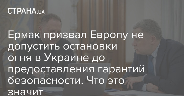Руководитель Офиса президента Андрей Ермак считает, что Европа не должна допустить полной остановки огня в Украине до тех пор, пока ей не предоставят гарантии безопасности.