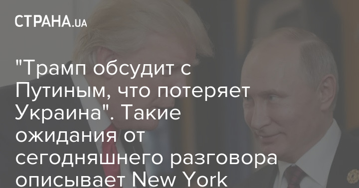 "Президент США Дональд Трамп обсудит с Владимиром Путиным, что потеряет Украина" - такие ожидания от сегодняшнего разговора президентов рисует газета The New York Times.