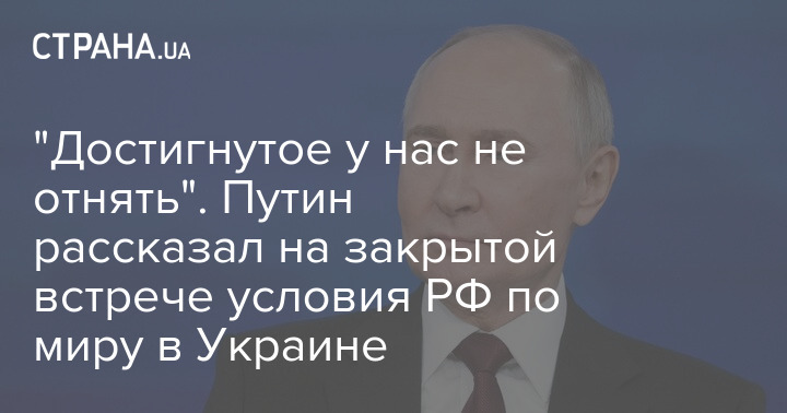 "Достигнутое у нас не отнять". Путин рассказал на закрытой встрече условия РФ по миру в Украине