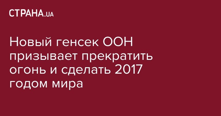 "Давайте прекратим огонь на полях сражения и будем за столом переговоров добиваться компромиссов в поисках политических решений. Пусть 2017 год станет годом мира!", - сказал Гутерреш.