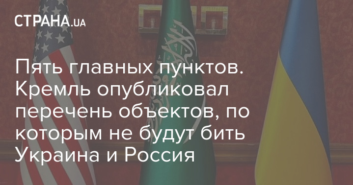 Кремль заявил, что Россия и США согласовали перечень российских и украинских объектов, подпадающих под действие временного моратория на удары по энергосистеме: