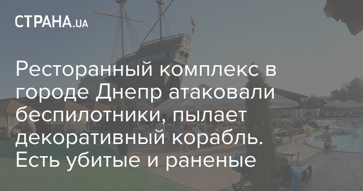 Ресторанный комплекс в городе Днепр атаковали беспилотники, пылает декоративный корабль. Есть убитые и раненые