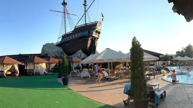 В Сети появилось видео горящего корабля, который был установлен в качестве декорации на территории отельно-ресторанного комплекса "Бартоломео", по которому ударил "Шахед".