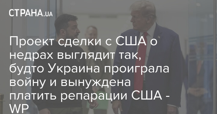 Проект сделки с США о недрах выглядит так, будто Украина проиграла войну и вынуждена платить репарации США - WP