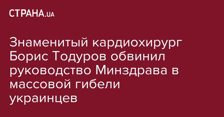 Известнейший Украинский кардиохирург Борис Тодуров резко раскритиковал работу главного врачебного ведомства страны и лично его руководителя Ульяны Супрун. В частности он обвинил Министерство охраны здоровья в срыве программы по сердечно-сосудистым заболеваниям (ССЗ), которая предусматривала закупку лекарственных препаратов для населения на сумму в 364 млн грн.