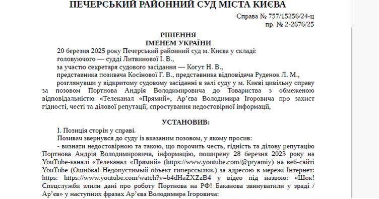 Печерский районный суд Киева обязал телеканал экс-президента Украины Петра Порошенко "Прямой" и народного депутата от "Евросолидарности" Владимира Арьева опровергнуть недостоверную информацию об известном юристе Андрее Портнове.