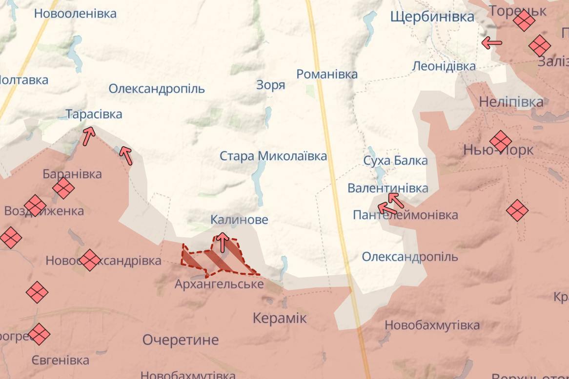 Также россияне продвинулись около Архангельского (восточнее Покровска) и Надеждинки (у границы с Днепропетровской областью).