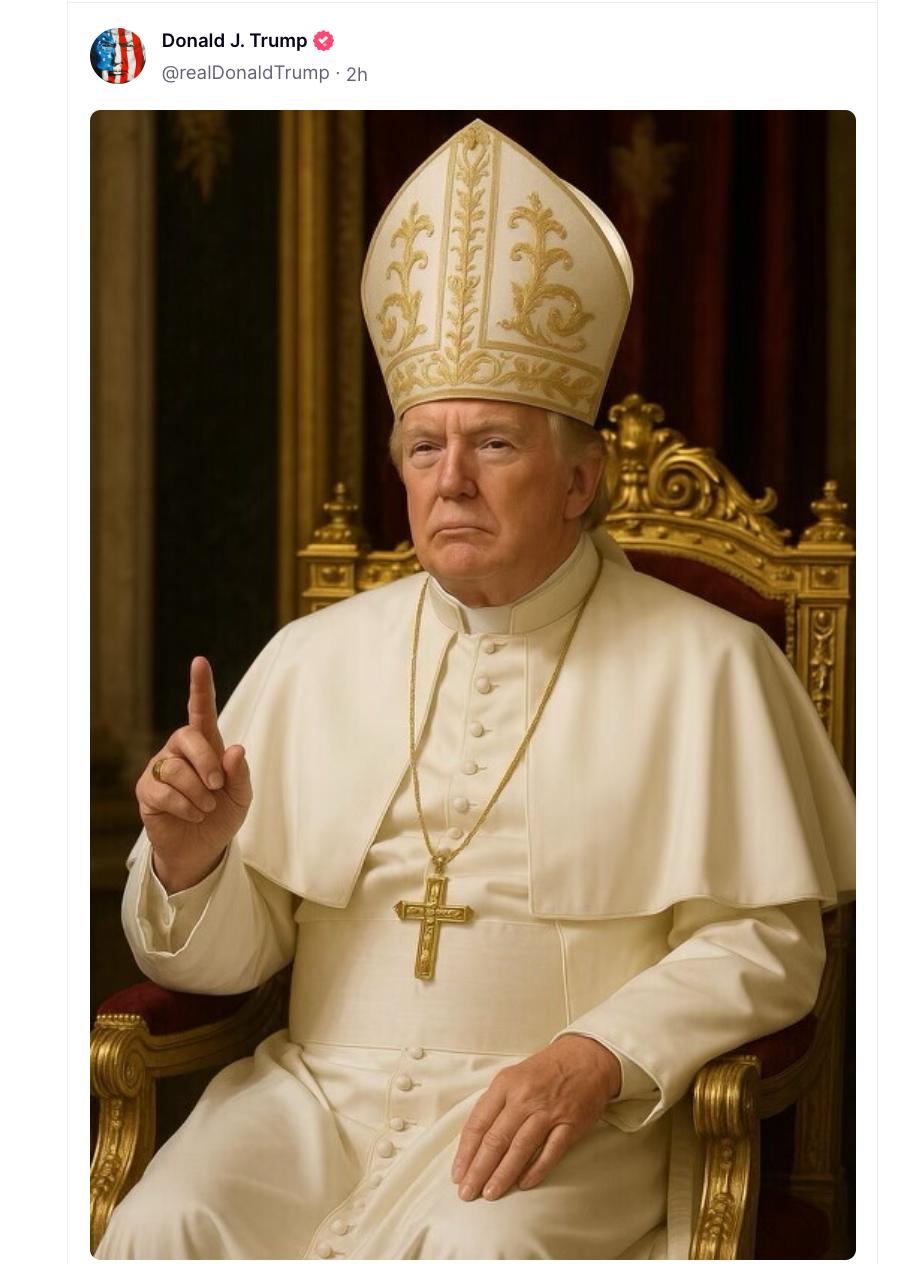 Президент США Дональд Трамп опубликовал свой портрет в образе Папы Римского.